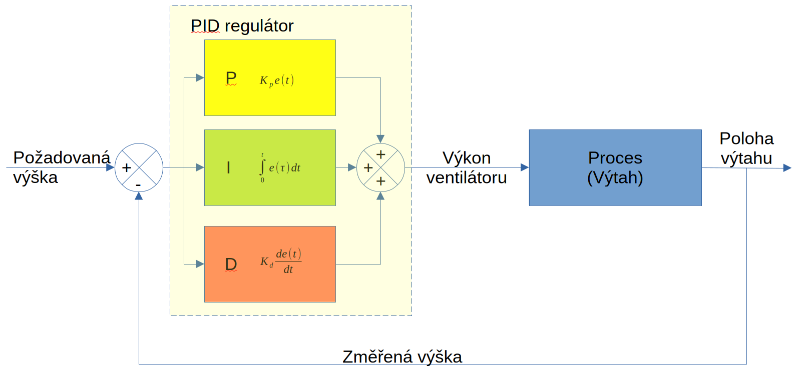 output = Kp * error + Ki * INTEGRAL + Kd * derivative # Výstup je kombinací P+I+D složek